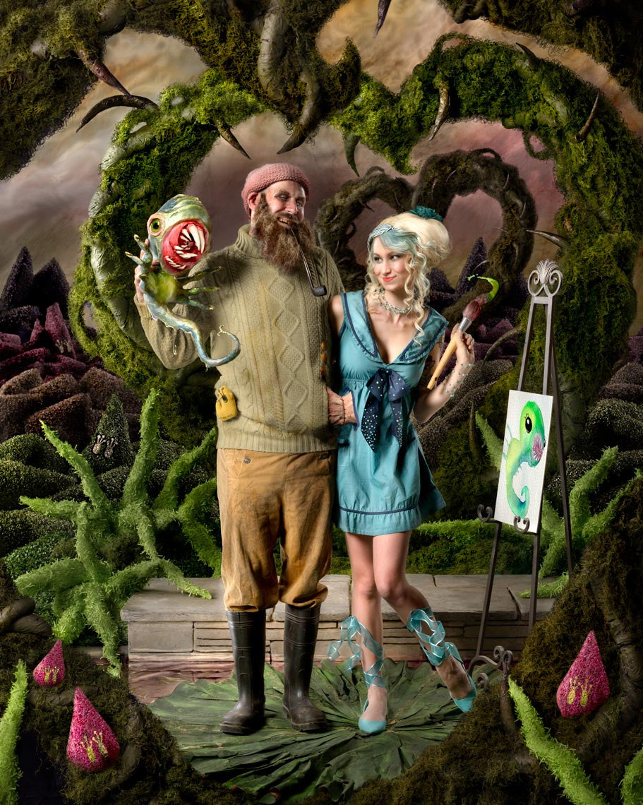 Alex Pardee and Chloe Rice in Für die Liebe der Seltsamen Zwillinge. From our highly regrettable series of "hysterical reenactment" family portraits featuring the artists from ZeroFriends including Alex Pardee, Skinner, Dave Correia, Jonathan Wayshak, Robert Bowen, Chloe Rice & Quake. For larger views of the portraits from this series, please see our die Familie tumblr site where you will also find all of the sorted stories..